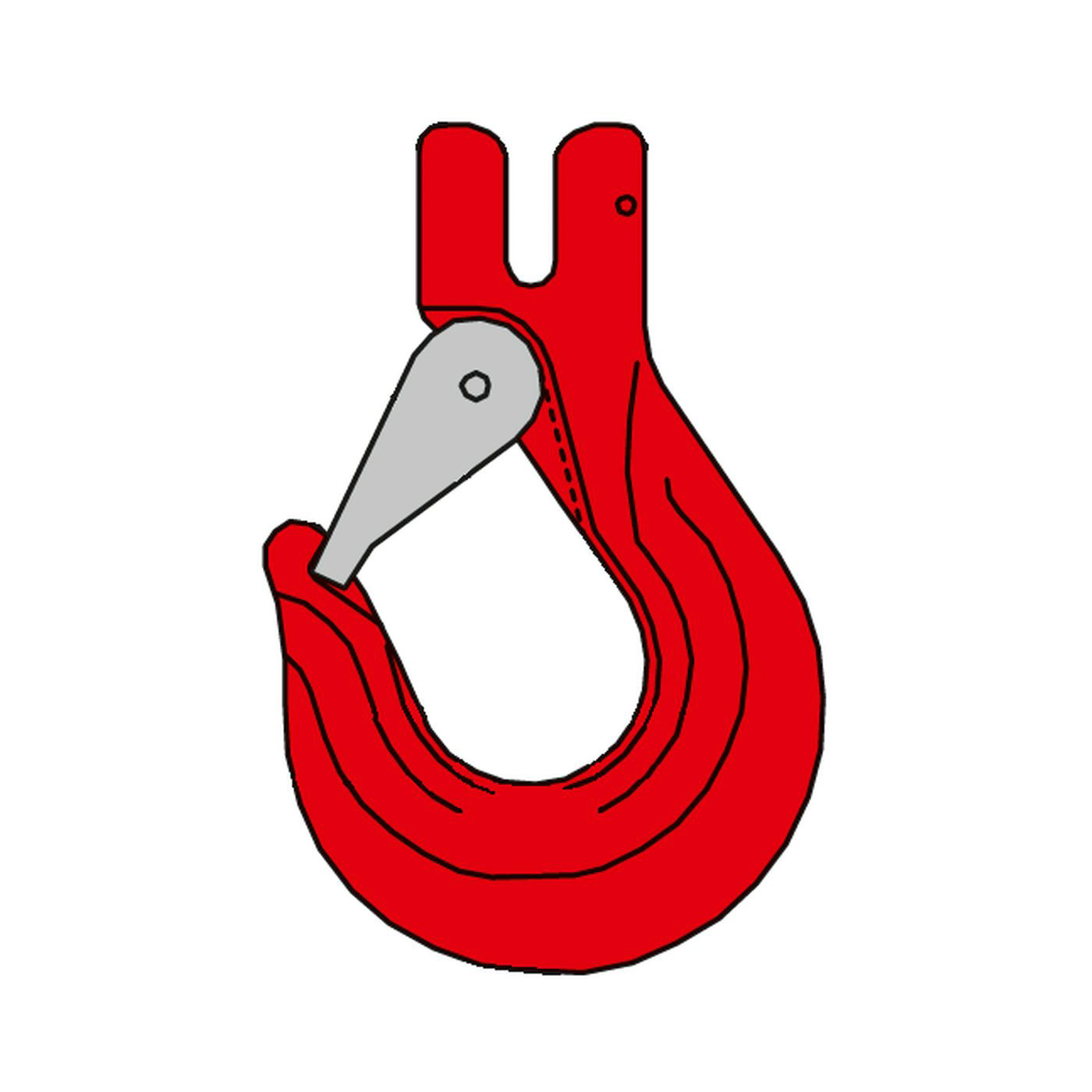 SIKA-Gabelkopfhaken Typ GHS mit besonders stabilem und sicherem Verschluss rot lackiert, Sicherheitsverschluss verzinkt.