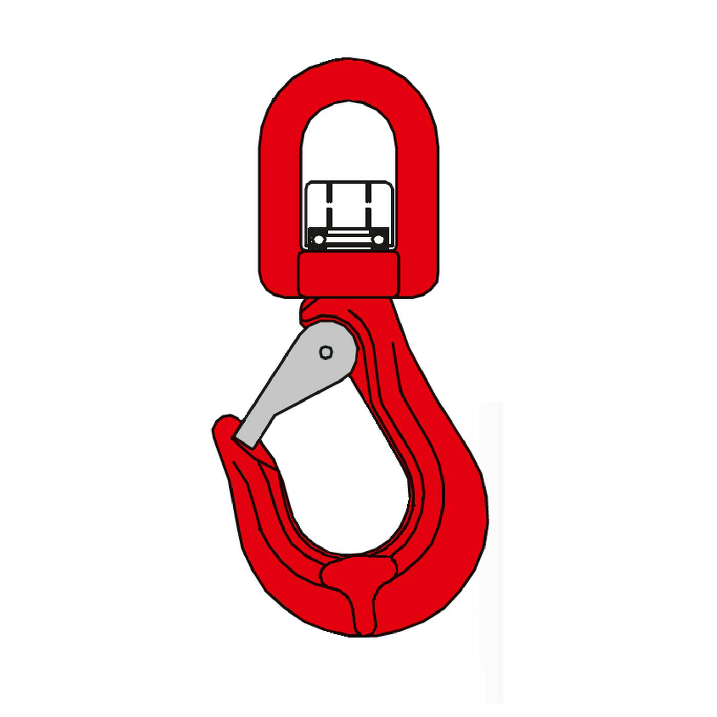 SIKA-Wirbelhaken Typ WHS mit Kugellager und besonders stabilem und sicherem Verschluss rot lackiert, Sicherheitsverschluss verzinkt.Wirbelhaken nur im geradem Zug belasten. Für Drehungen unter Last geeignet.