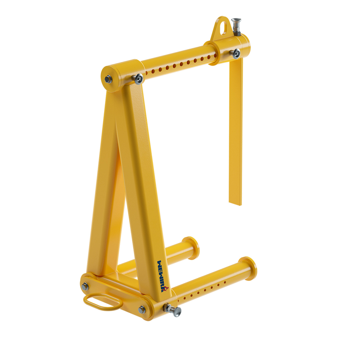 Die Rundzinken können auf die Breite der Spule eingestellt werden. Die Gabel ist mit einer Kipp-Sicherung ausgestattet. Dadurch ist ein sicheres Arbeiten möglich. Zum Führen der Krangabel dient ein Handgriff am Rücken. Somit besteht für die Hand keine Klemmgefahr.