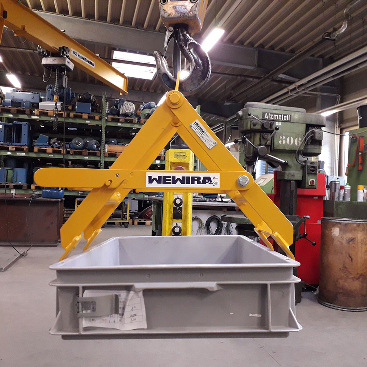 Behälter und Kisten in der Fertigung sind besonders dort wo Stanzteile und Schüttgut hergestellt wird nicht mehr wegzudenken. Im befüllten Zustand ergeben sich oft Traglasten, die ohne Hubhilfe nur noch schwer oder überhaupt nicht mehr zu heben sind. Hier bieten sich die WEWIRA Kistengreifer an. So können häufige Arbeitsvorgänge ergonomisch und den Rücken entlastend durchgeführt werden. Arbeitsplätze werden so effektiver, schneller und für den Anwender benutzerfreundlicher.