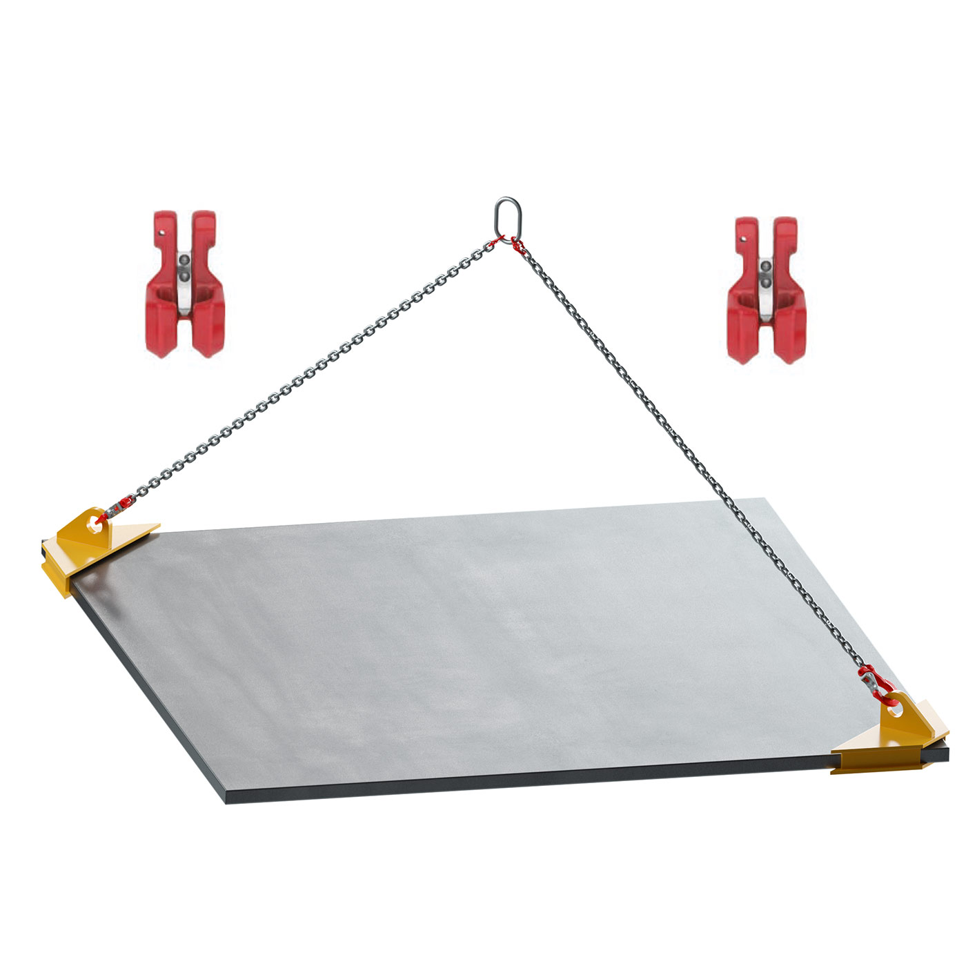 Diese Blech-Ecktaschen sind für das Transportieren, Heben und Senken von Einzelblechen sowie gesicherten Blechpaketen geeignet. Horizontalklemmen müssen immer mindestens paarweise benutzt werden. Es können auch vier Ecktaschen mit einer Vierstrangkette verwendet werden. Die Tragfähigkeit der Einzeltaschen kann in diesem Fall summiert werden.