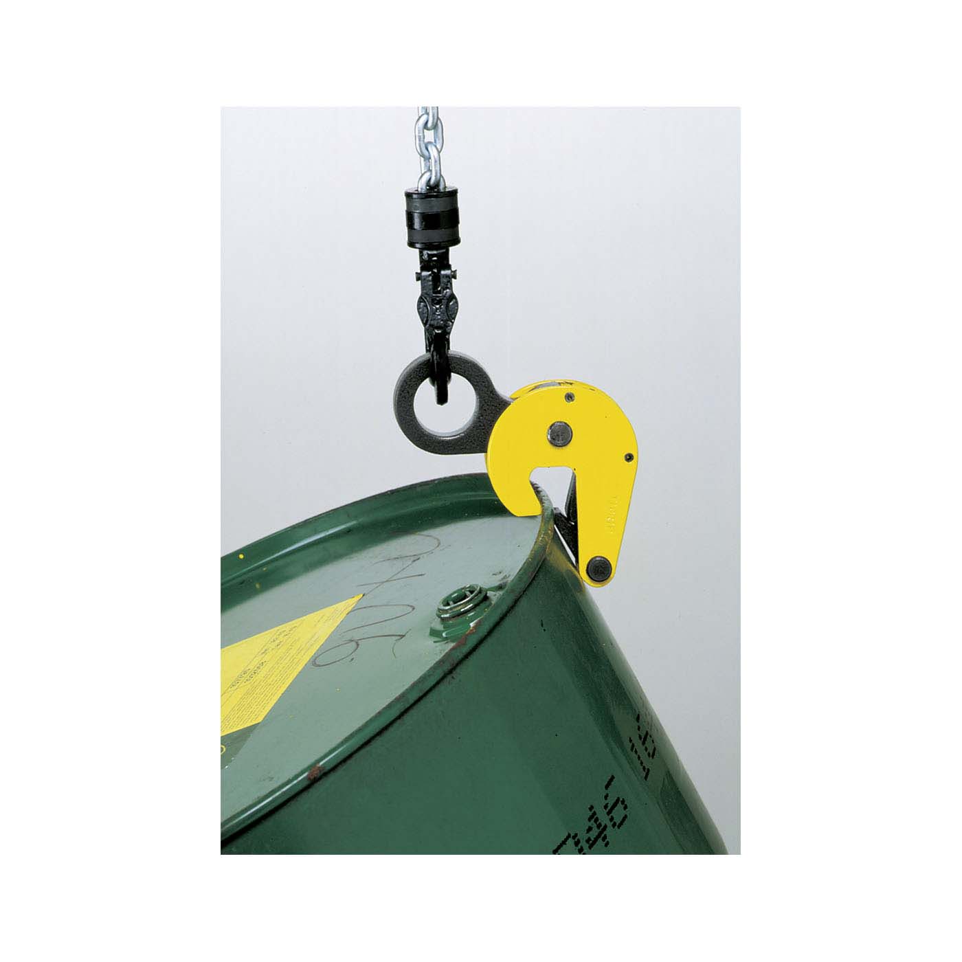 Die Klemme fasst unter den Rand des Fasses. Aufgrund einer Federvorspannung wird ein unbeabsichtigtes Öffnen der Klemme vermieden.
