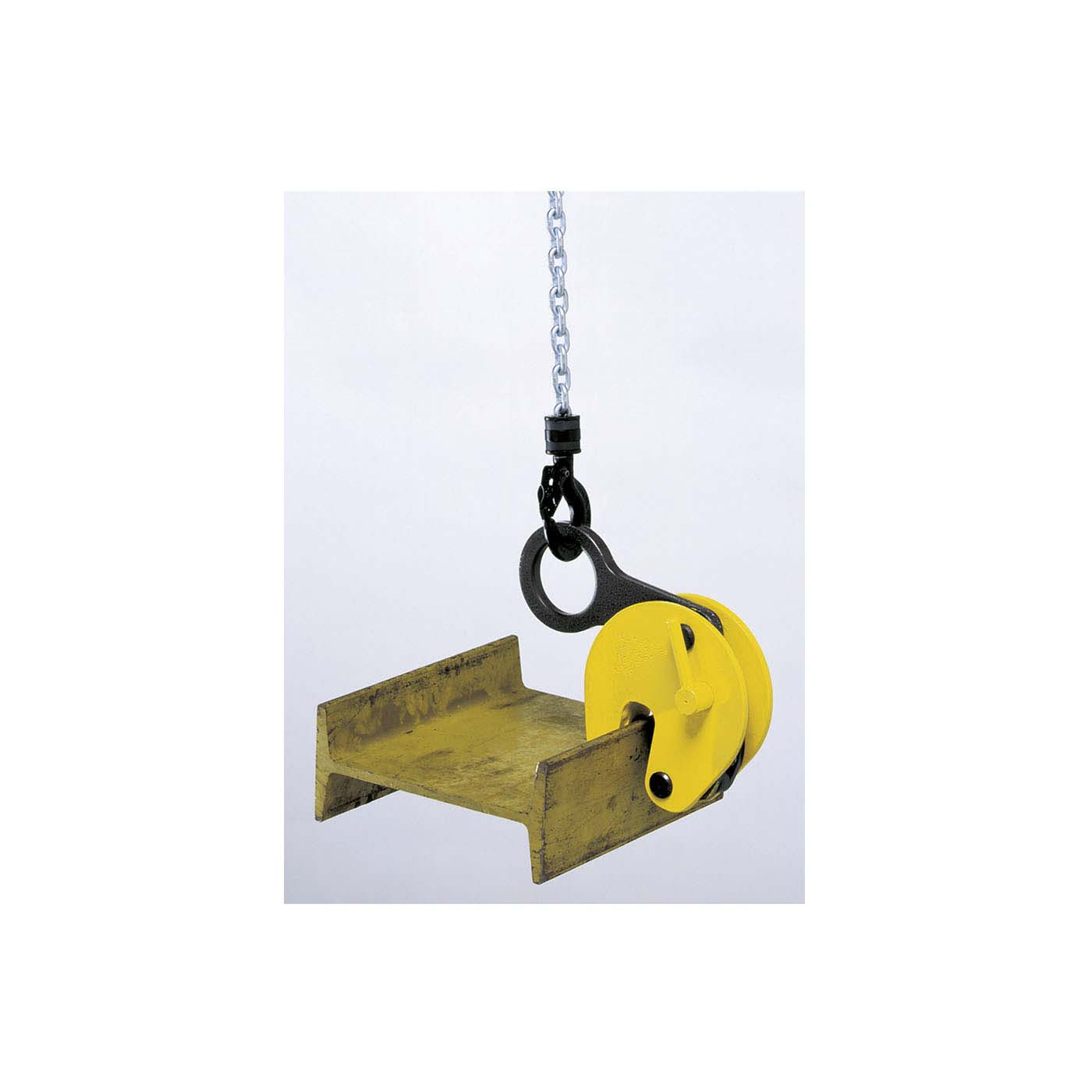 Der Trägergreifer TTR eignet sich besonders zum vertikalen Transport und zum Aus- und Einlagern von Trägern. Durch die weitgehend im Schwerpunkt der Träger liegende Aufhängeöse wird die annähernd vertikale Lage der Trägerflansche erreicht.