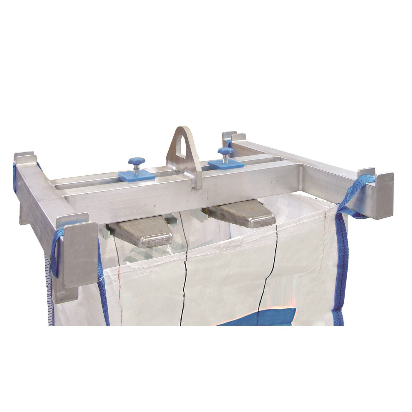 Die Traverse hat eine 4-Punkt-Aufhängung (stirnseitig) zum Einhängen der Schlaufen des Big-Bags.