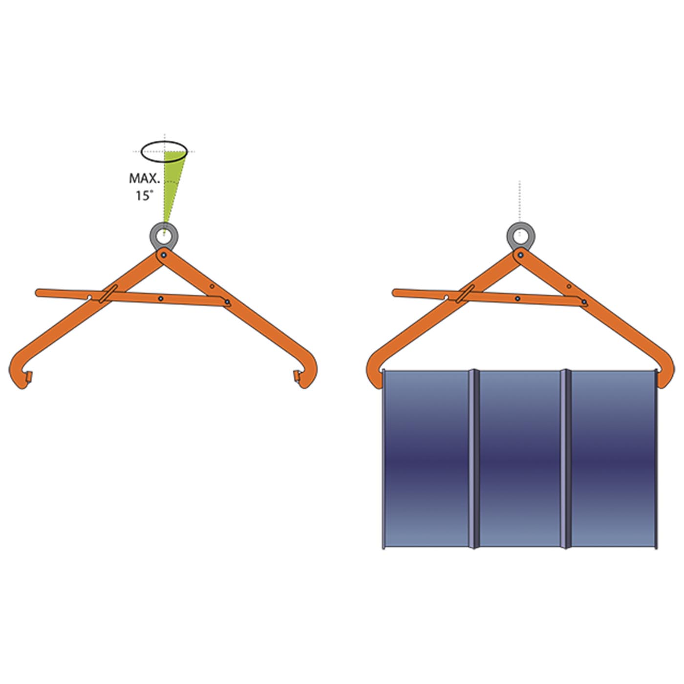 Diese Fassklemmen eignen sich zum Transportieren, Heben und Senken liegender Fässer (waagerechter Transport). Der Einsatz der Fassklemmen sollte vorzugsweise nur mit geschlossenen Fässern erfolgen.