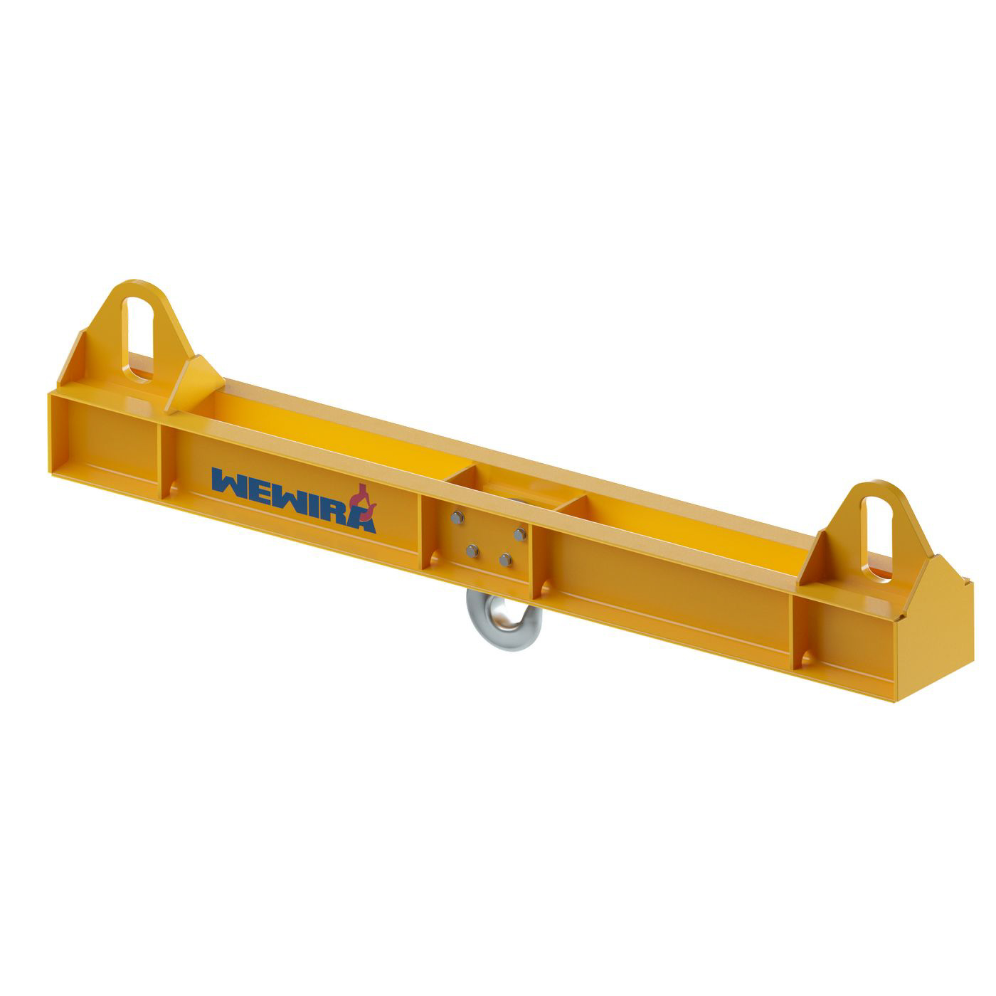 Die Last-Traversen mit 2facher Aufhängeöse - auch 2-Kran-Traversen genannt - können mit Einfach- oder Doppelhaken ausgestattet werden. Mit dieser Traverse können zwei Krane gekoppelt werden, so dass sich die Tragfähigkeiten beider Krananlagen addieren.