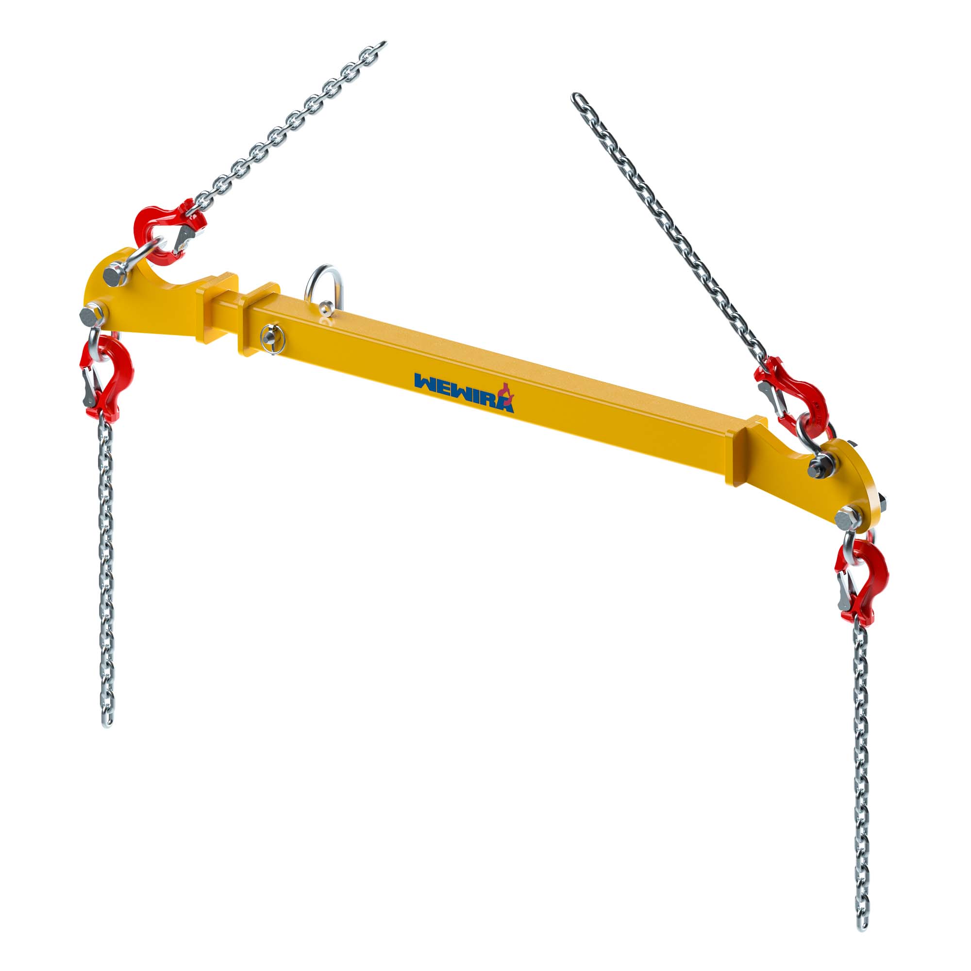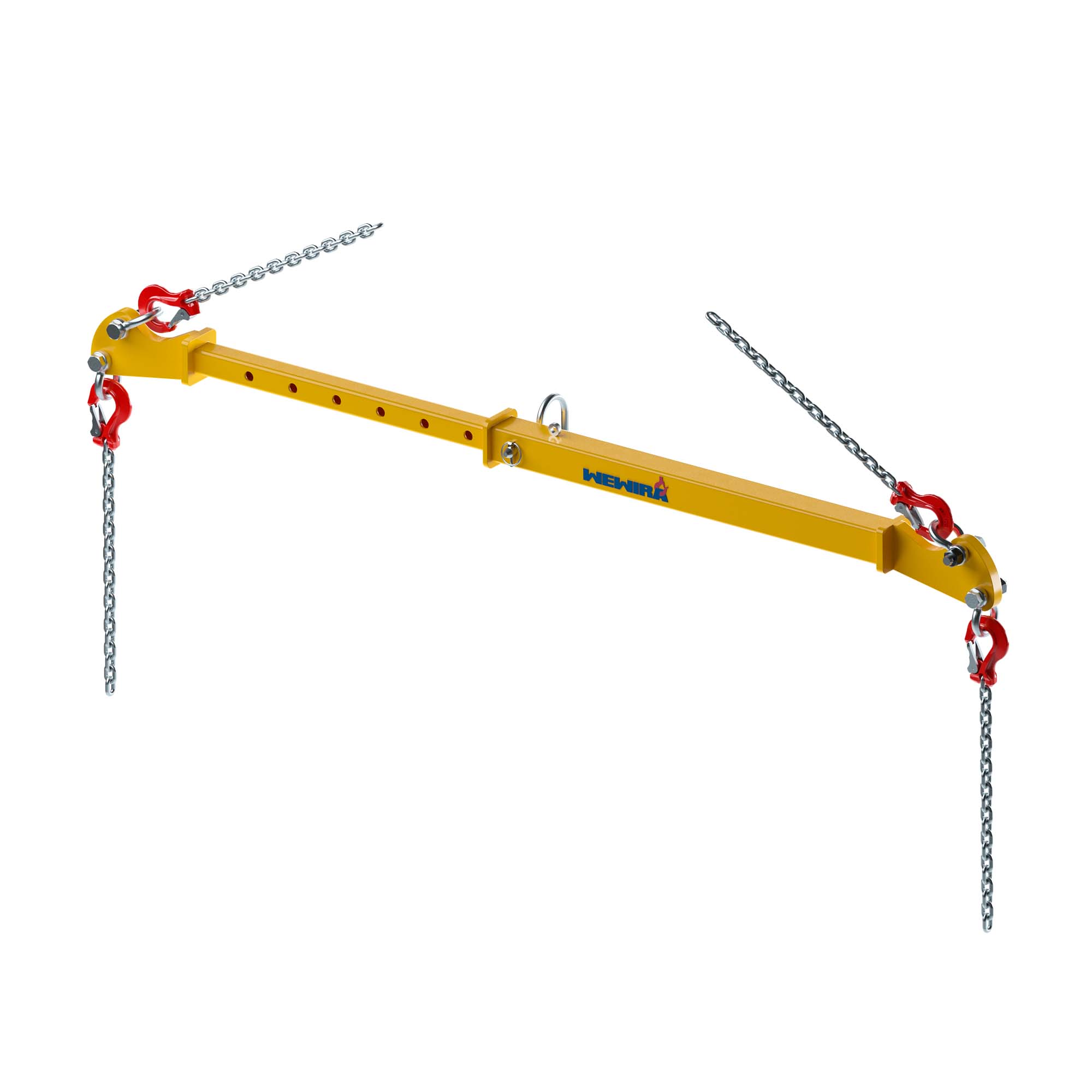 Der wesentliche Vorteil der Spreiztraversen ist, dass die Kettengehänge im Hebevorgang einen senkrechten Lastverlauf haben. D.h. die anzuhebende Last kann ohne Wirkung von Druckkräften angehoben werden. Die Traverse ist auf verschiedene Arbeitsbreiten einstellbar (bei Veränderung der Tragfähigkeit). Die Traverse kann mit den entsprechenden Kettengehängen (Nenndicke 10-10) ergänzt werden.