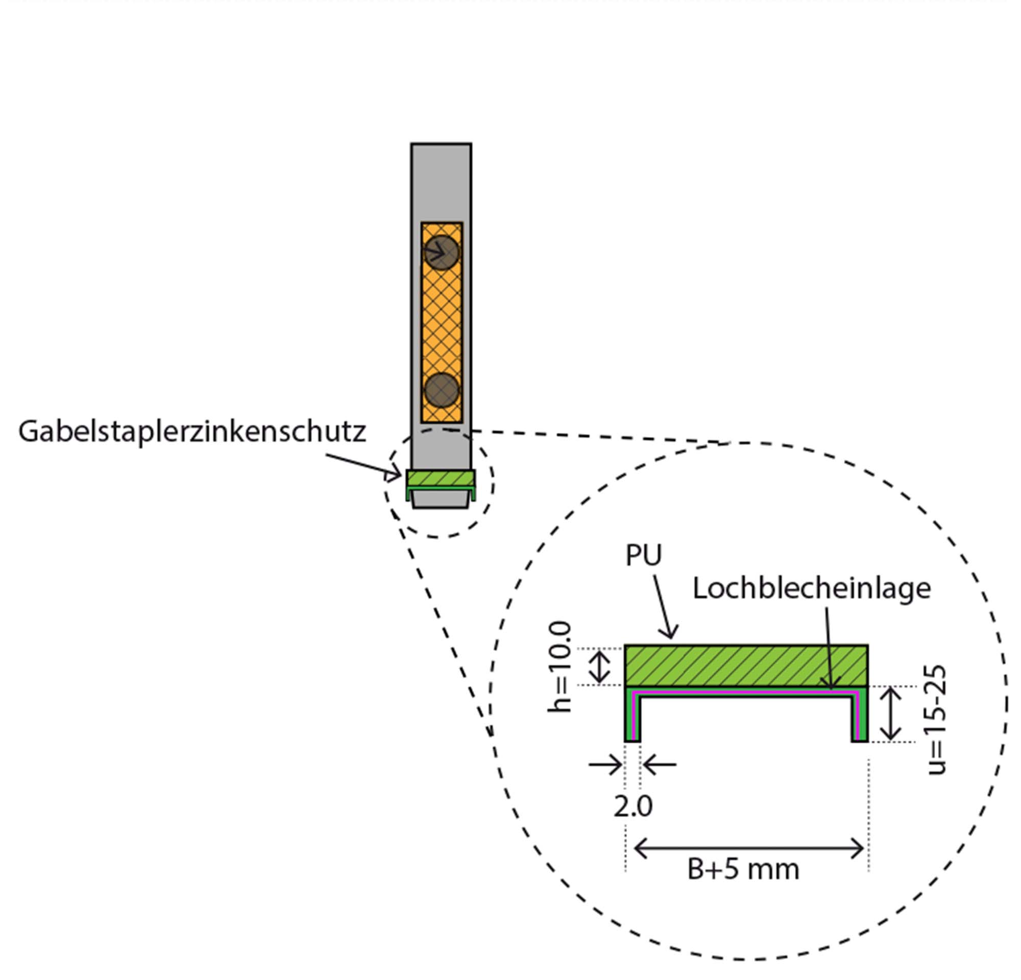 Schützt Last und Staplerzinken vor Beschädigungen. Der PU Zinkenschutz besteht aus einem hochwertigem PU Elastomer mit einer Härte von ca. 80 Shore A.