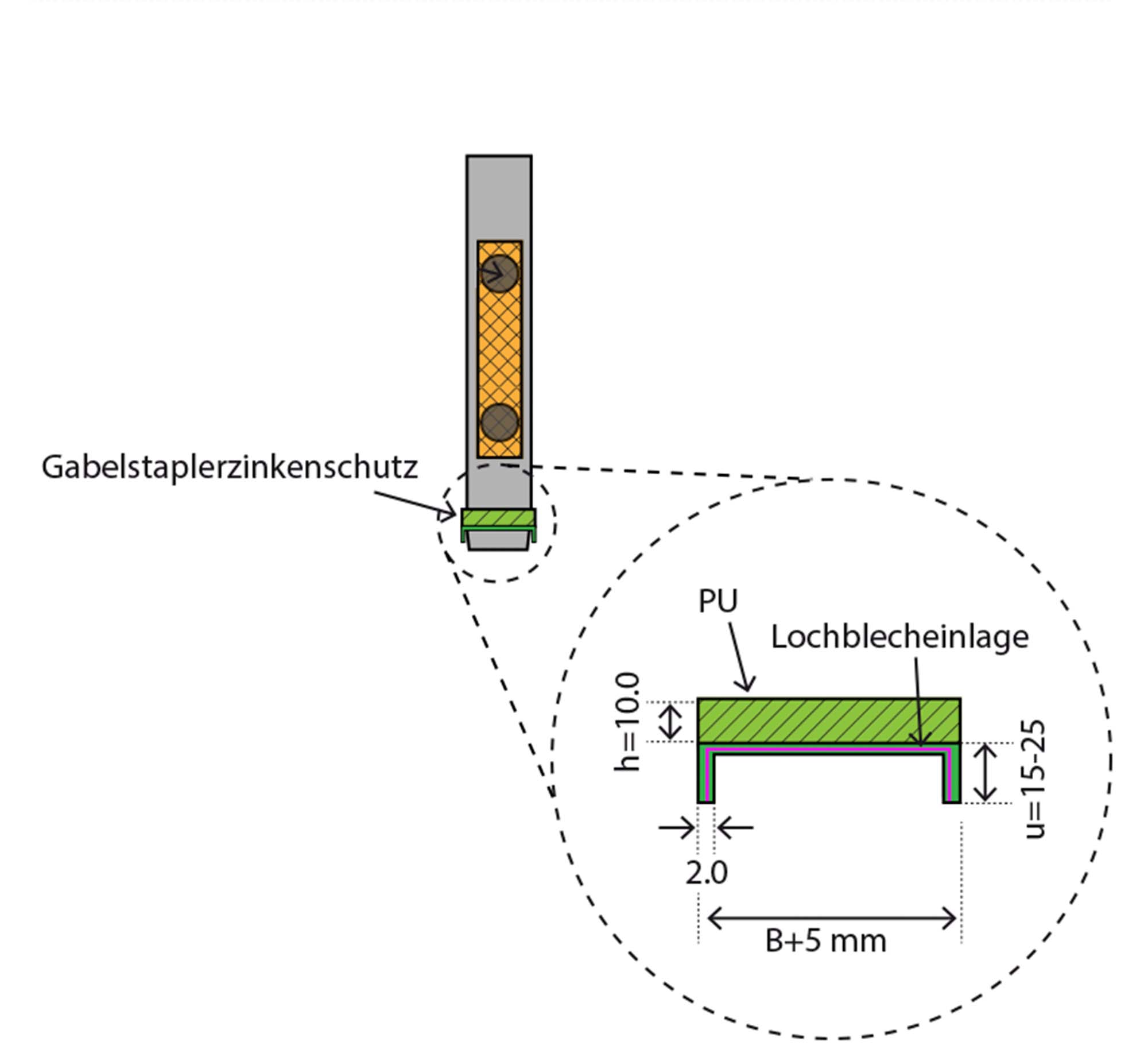 Schützt Last und Staplerzinken vor Beschädigungen. Der PU Zinkenschutz besteht aus einem hochwertigem PU Elastomer mit einer Härte von ca. 80 Shore A.
