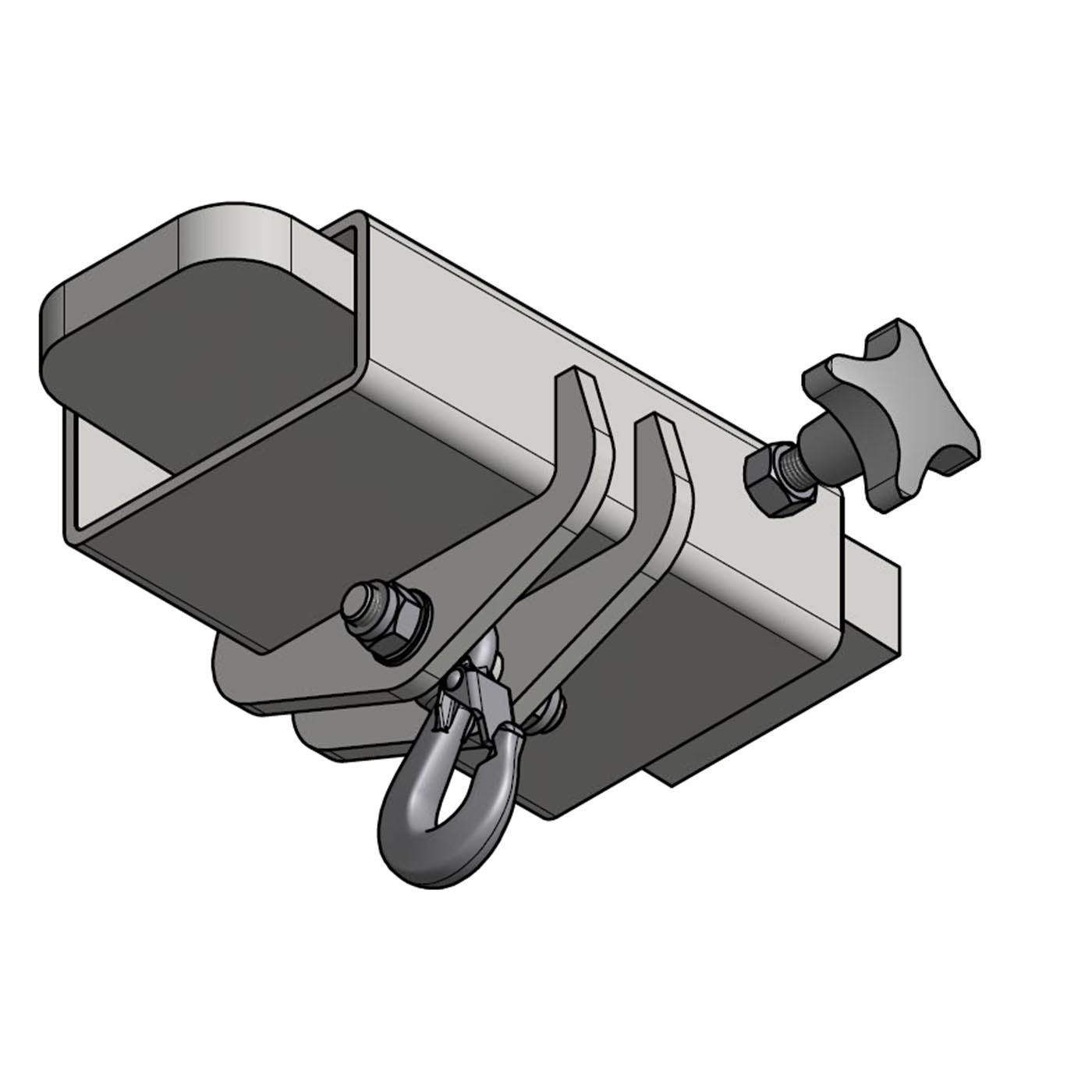 Klemmhebel zum Arretieren ausgestattet. Der Stapler-Schuh ist mit einem Ösenhaken ausgestattet.