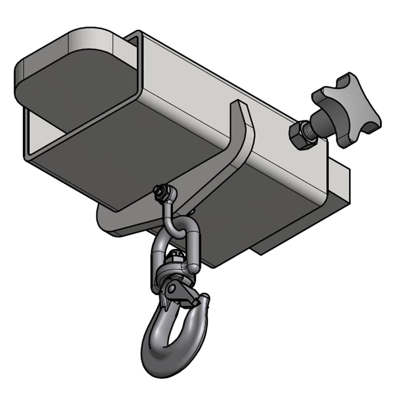 Klemmhebel zum Arretieren ausgestattet. Der Stapler-Schuh ist mit einem drehbaren Wirbelhaken ausgestattet.